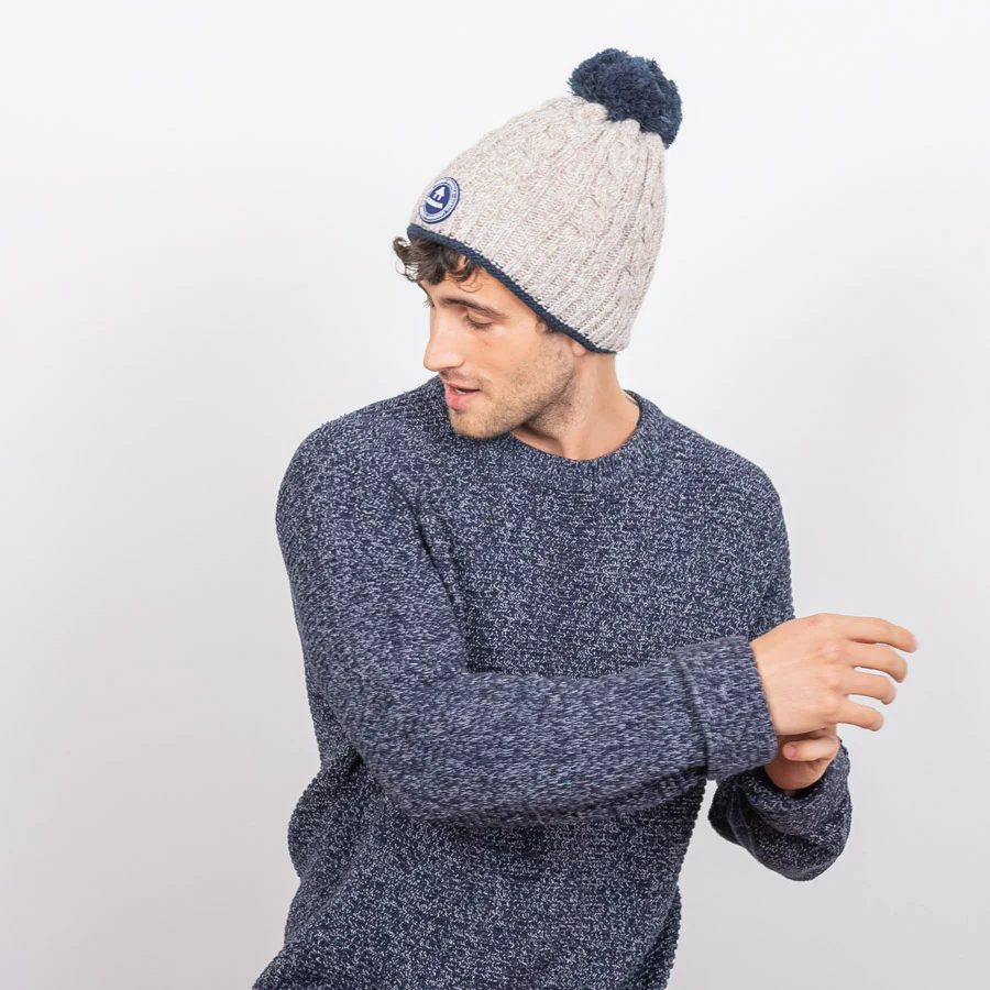 Le bonnet avec bande polaire Cabaia et ses 3 pompons interchangeables grâce à leur aimant, pour assortir votre bonnet à toutes vos tenues. Tricoté avec amour.